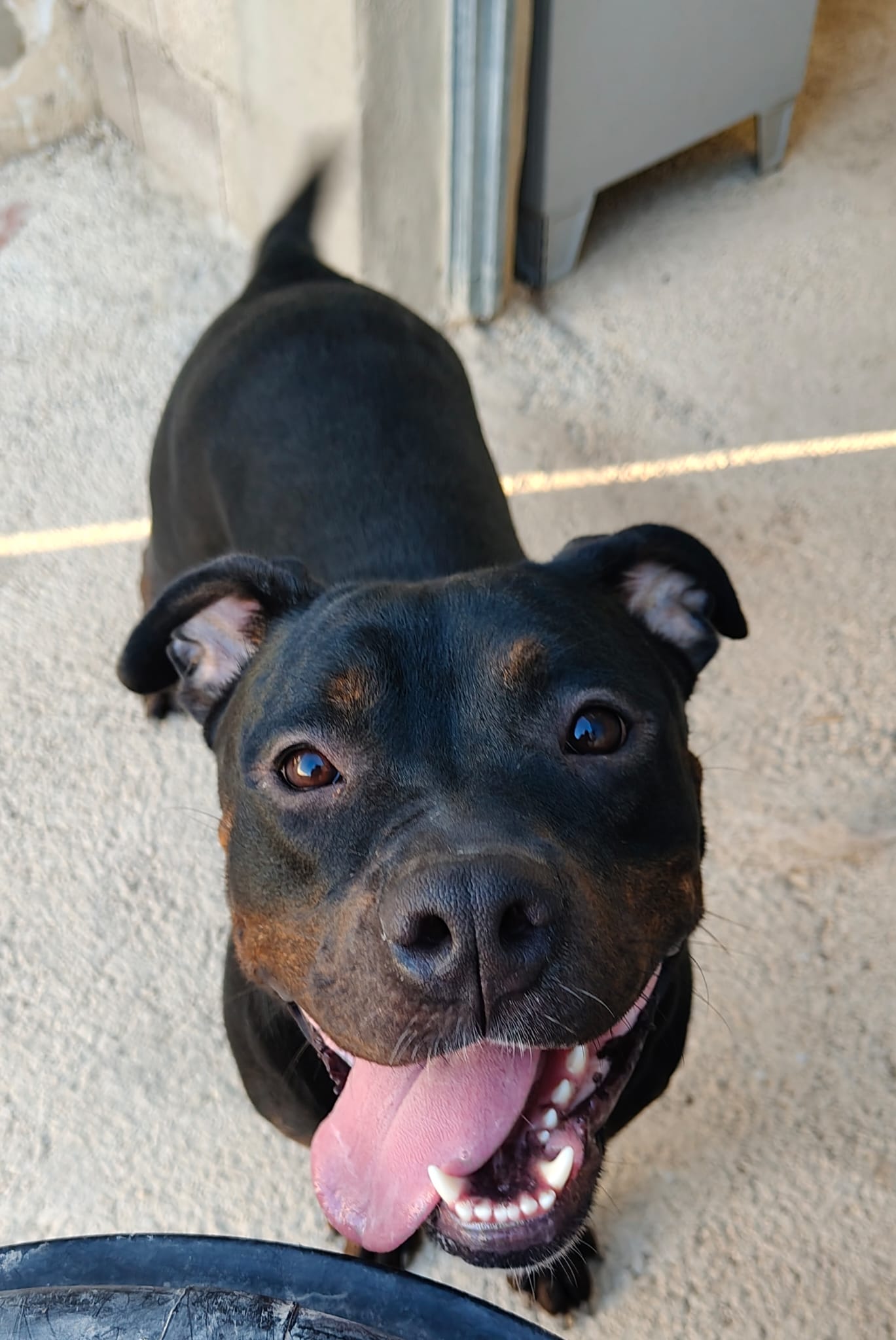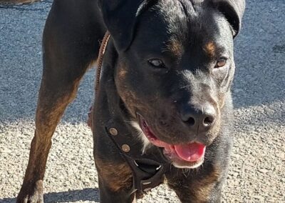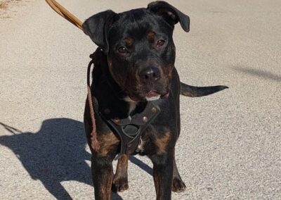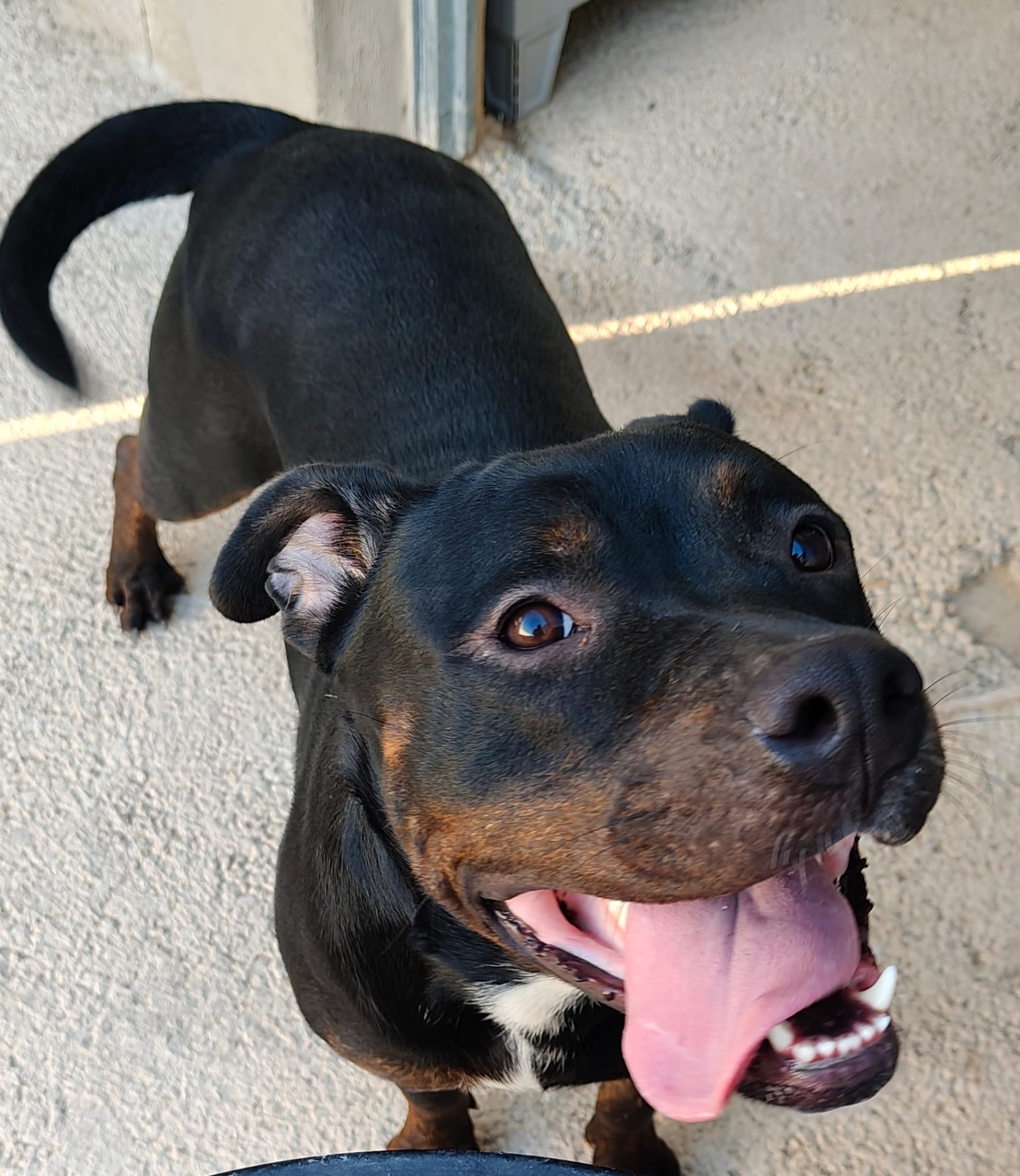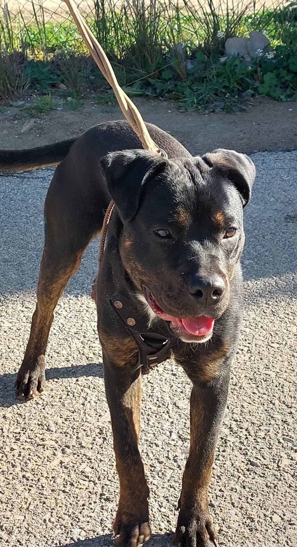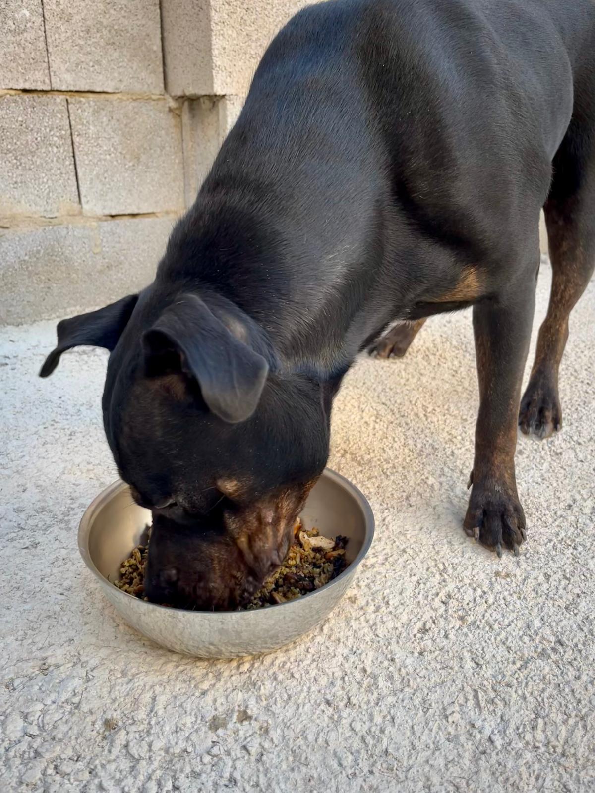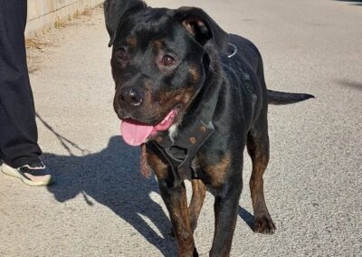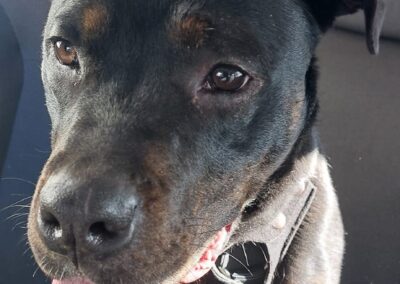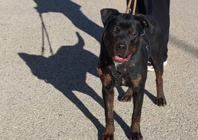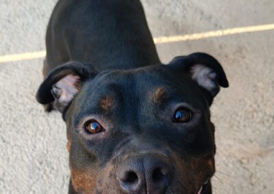 Ari es una joven mestiza preciosa, de pelaje negro brillante y mirada llena de vida. Detrás de esa energía alegre se esconde una historia de abandono y superación.