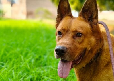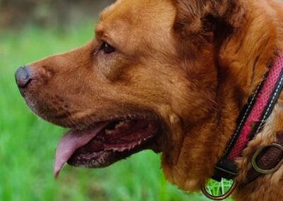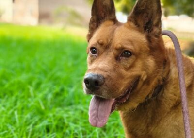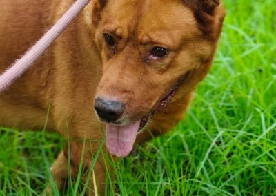 Por suerte, los perros no piensan como los humanos; de lo contrario, Cheko probablemente estaría lamentando todos esos años perdidos y resignándose a su destino. El viejo macho pasó todos esos años prácticamente solo, sin la tan deseada atención de su familia. Adoptado de cachorro, lo mantenían afuera, en un espacio muy pequeño de casa, en el terreno del trabajo durante el día. Lloraba desconsoladamente porque quería estar dentro con su familia, lo que significaba que tenía que vivir completamente en el terreno del trabajo. Aunque tenía más espacio, se aburría, así que empezó a escaparse. Como resultado, Cheko ahora tenía que pasar día y noche atado a una cadena. Enfermó y se volvió cada vez más infeliz. Todo porque anhelaba desesperadamente atención y cariño. Finalmente, el personal del refugio ADA Canals logró sacar a Cheko de allí y por fin le brindaron atención médica. Ahora vive en el terreno del refugio de animales, donde al menos puede estirar las piernas. A Cheko le encantan los paseos con los voluntarios más que nada, aunque tire bastante de la correa por la emoción de este raro regalo. Aún queda trabajo por hacer en eso. Ver a Cheko absorbiendo las impresiones y la amabilidad como una esponja durante un paseo es conmovedor. Nunca le han permitido conocer a otros perros y, por lo tanto, tiene problemas para interactuar. Otro área de trabajo que se adapta mejor a manos experimentadas.